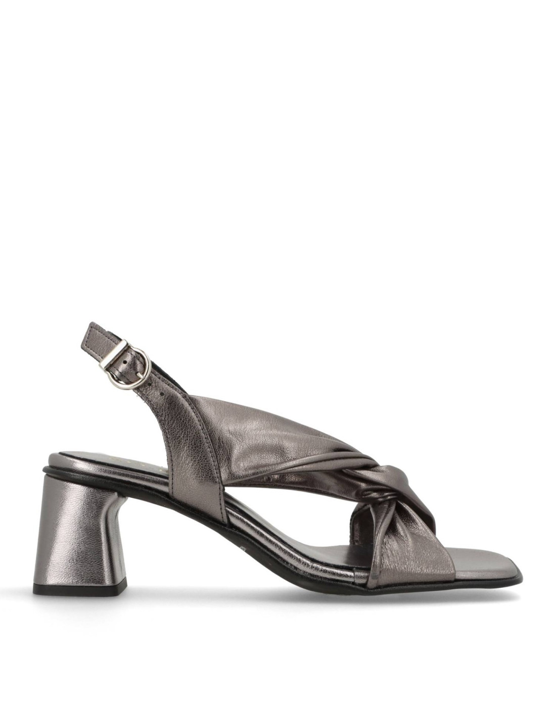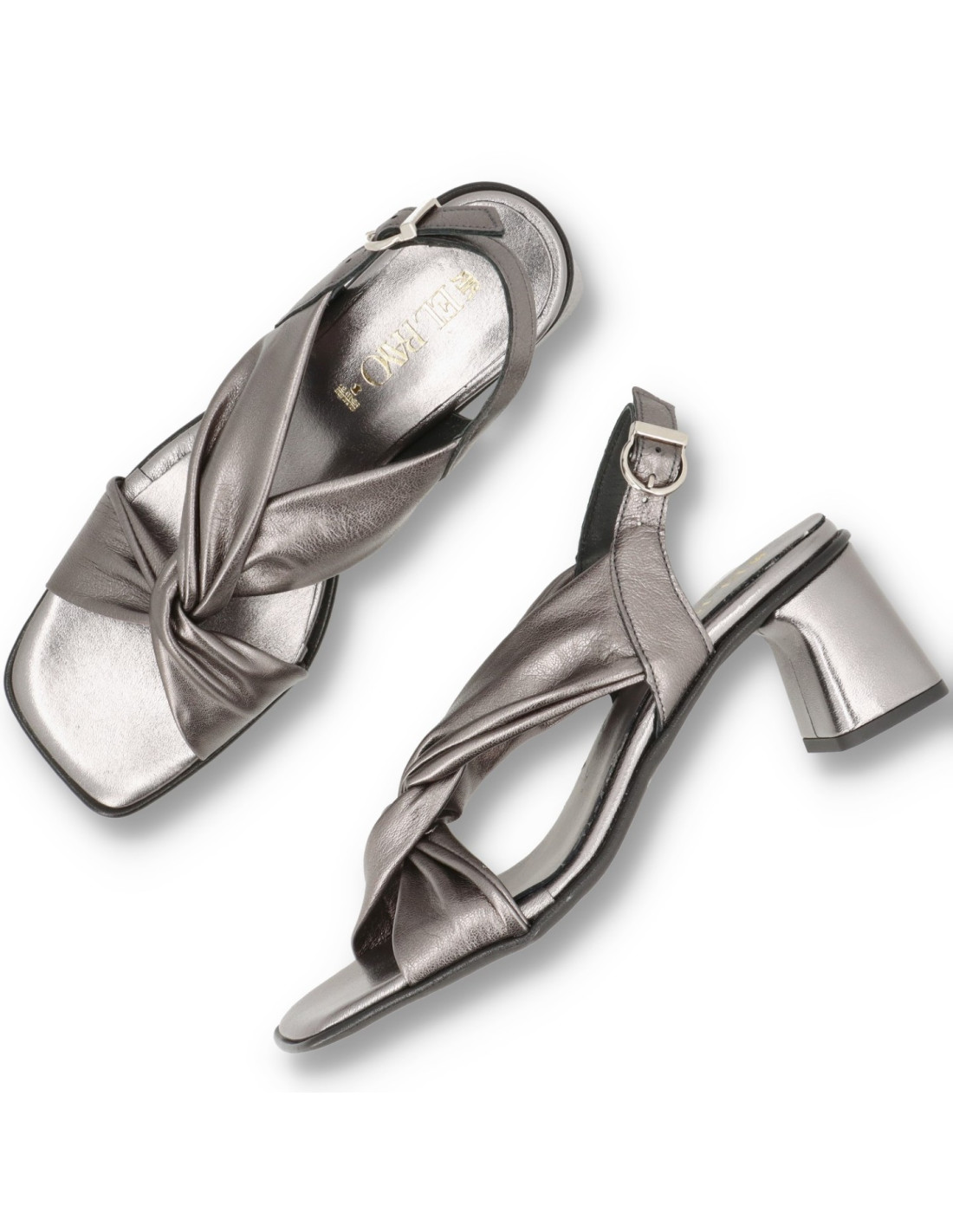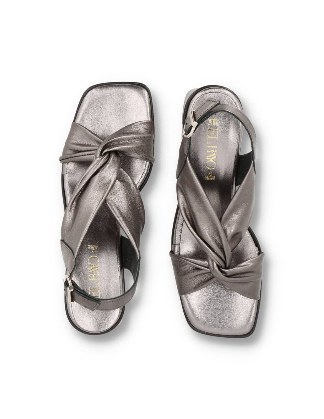 Sandalia de tacón para mujer 65653 de EL RAYO TRENDS. Sandalia de piel 100%vacuno acabado metalizado Plomo, plantilla de doble densidad que garantiza una pisada cómoda y confortable. Talón ajustable con hebilla, tacón ancho y cómodo lacado al tono con una altura de unos 5cm. HECHO EN ESPAÑA.