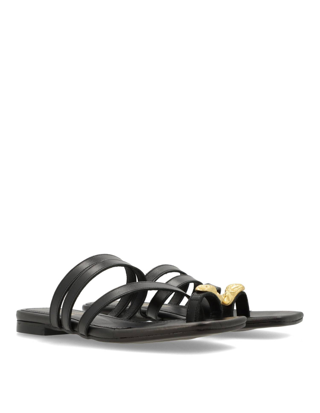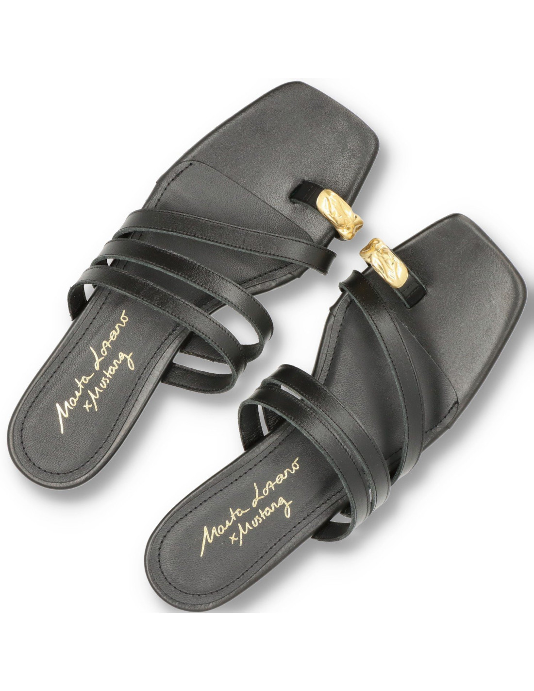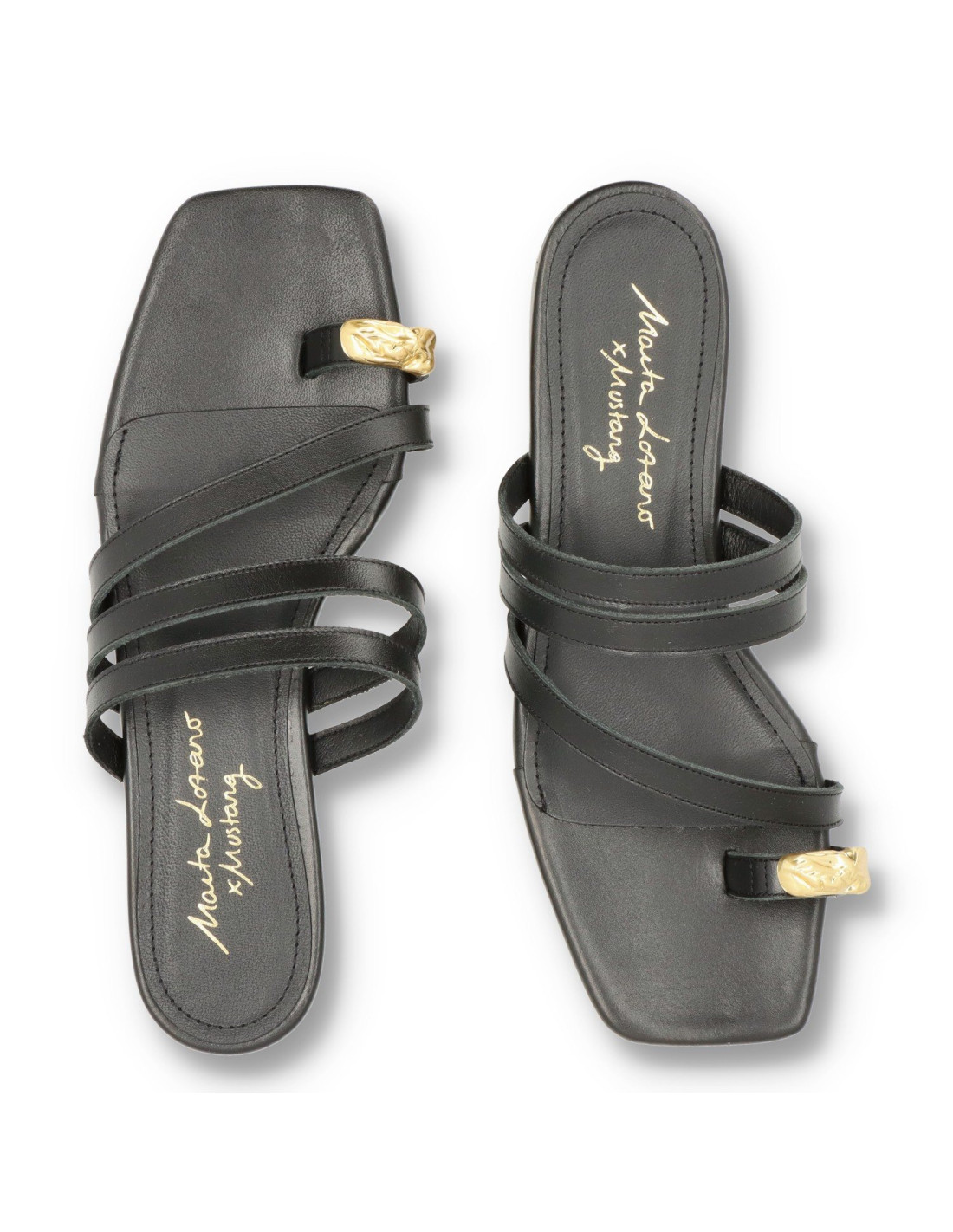 Sandalias planas de mujer 54912 NECANE de Marta Lozano para Mustang. Diseñadas por la propia Marta Lozano, esta sandalia plana con tiras y detalle metálico en el dedo, son pura esencia del mediterrano. Confeccionada toda en piel 100%vacuno y suela de goma flexible y ligera. HECHO EN ESPAÑA.