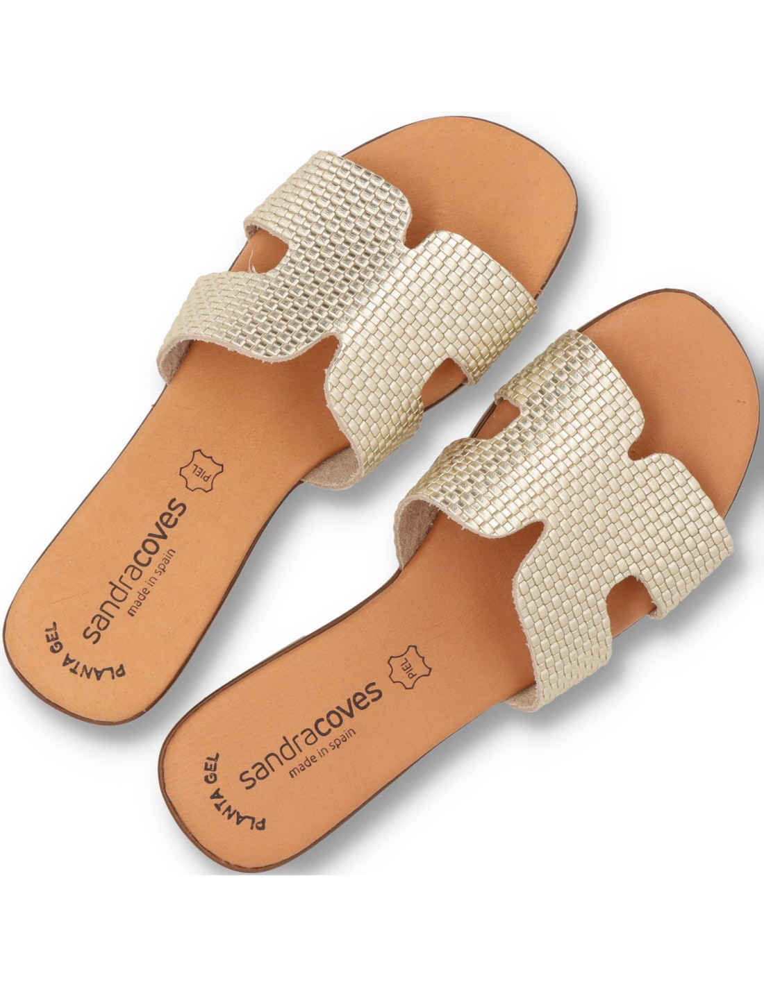 Sandalias planas de muje 3053G de RAYO TRENDS. De piel 1005vacuno metalizado grabadao. Planta de gel forrada de piel para una pisada más comoda, suela de goma felxible. HECHO EN ESPAÑA.