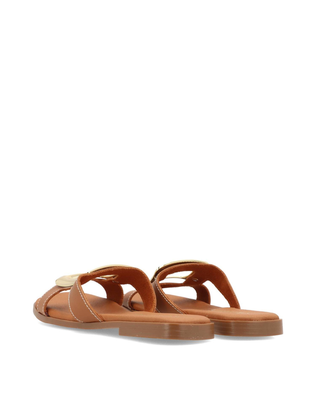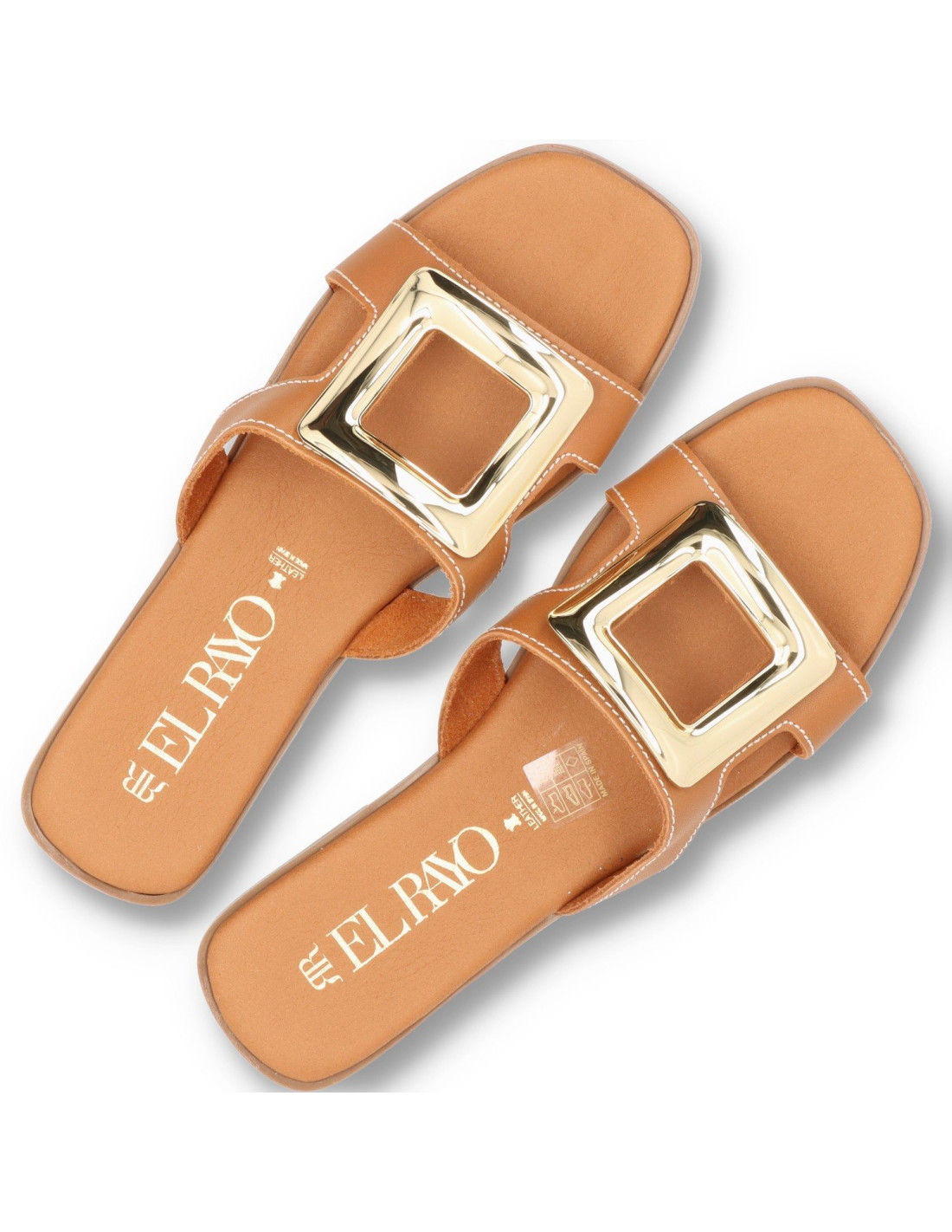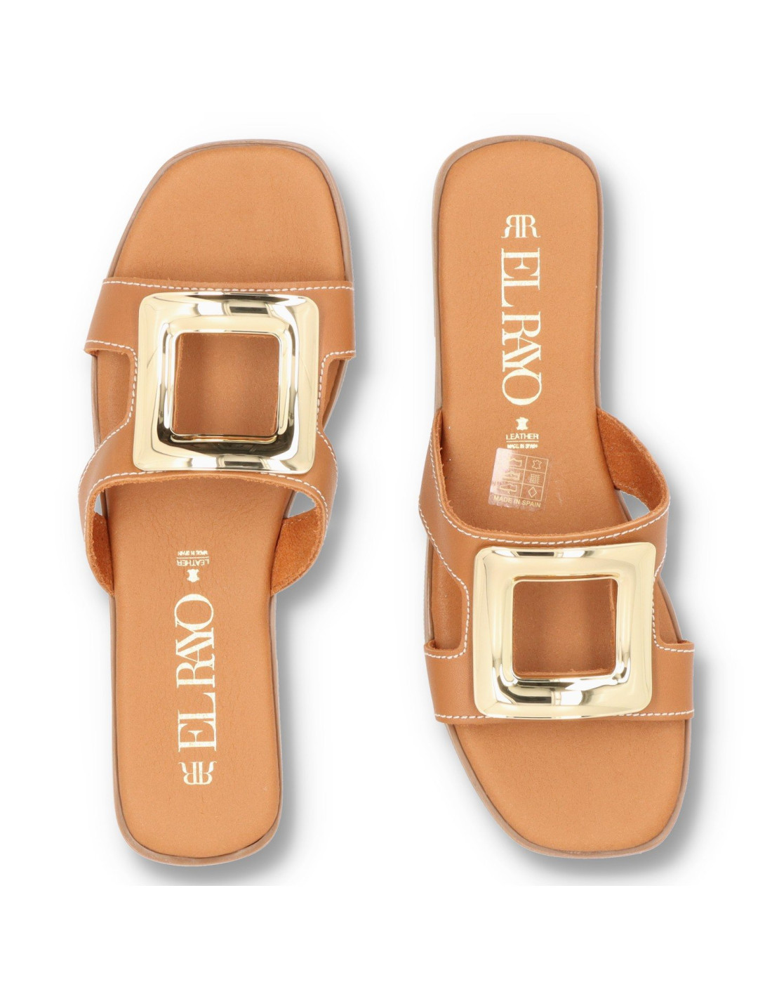 Sandalias planas de mujer 5565 de RAYO TRENDS. Confecciona toda en piel 100%vacuno y planta de gel. Pala calada con adorno metal dorado y pespuntes contrastados. Suela de goma flexible y ligera. HECHO EN ESPAÑA.