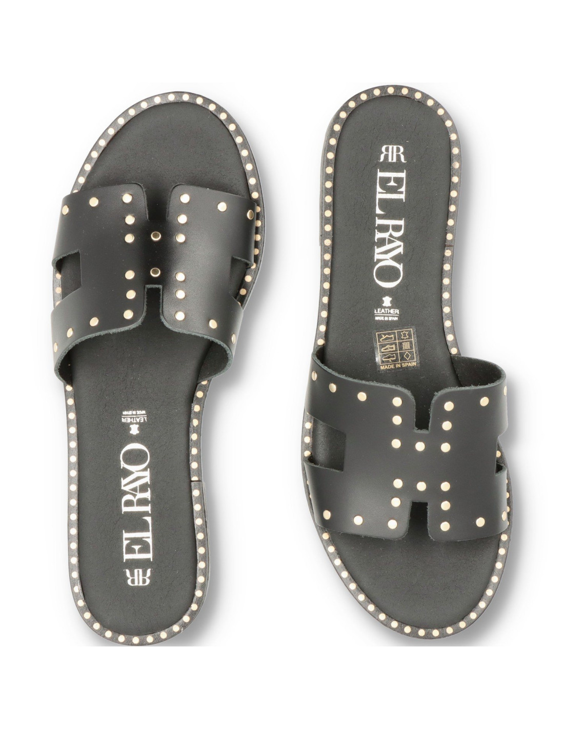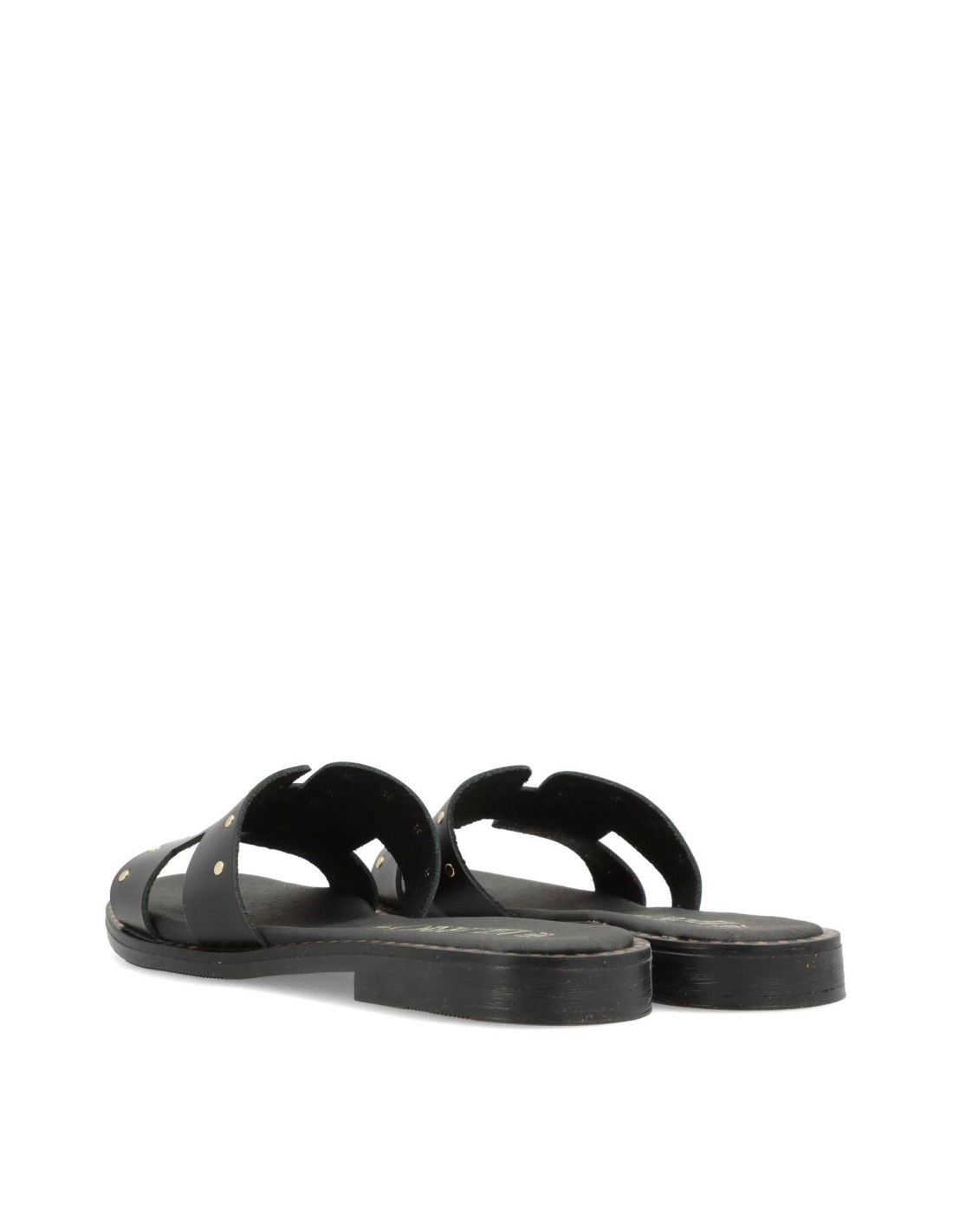 Sandalias planas de mujer 5576 de RAYO TRENDS. Confeccionada tod en piel 100%vacuno y planta de gel. Detalle en pala y cerco con tachas doradas, suela de goma flexible y ligera. HECHO EN ESPAÑA