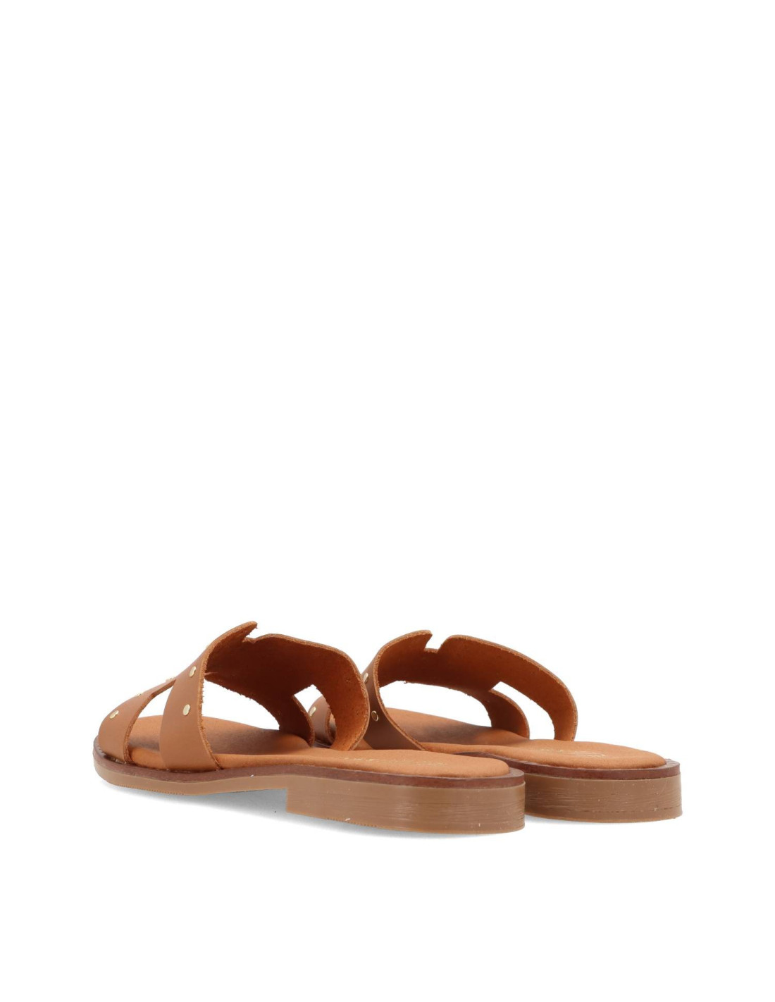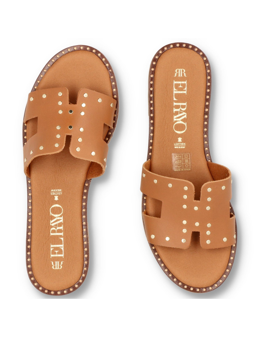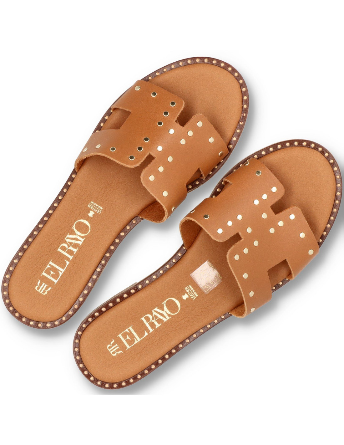 Sandalias planas de mujer 5576 de RAYO TRENDS. Confeccionada tod en piel 100%vacuno y planta de gel. Detalle en pala y cerco con tachas doradas, suela de goma flexible y ligera. HECHO EN ESPAÑA