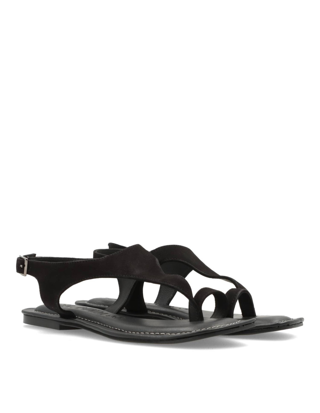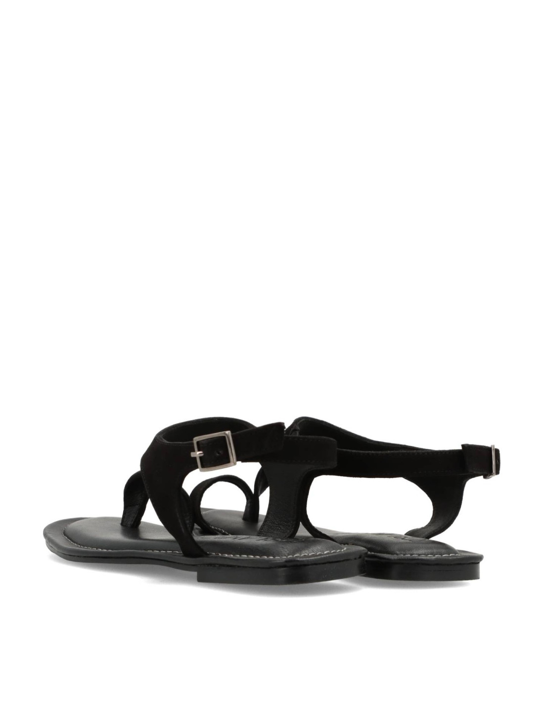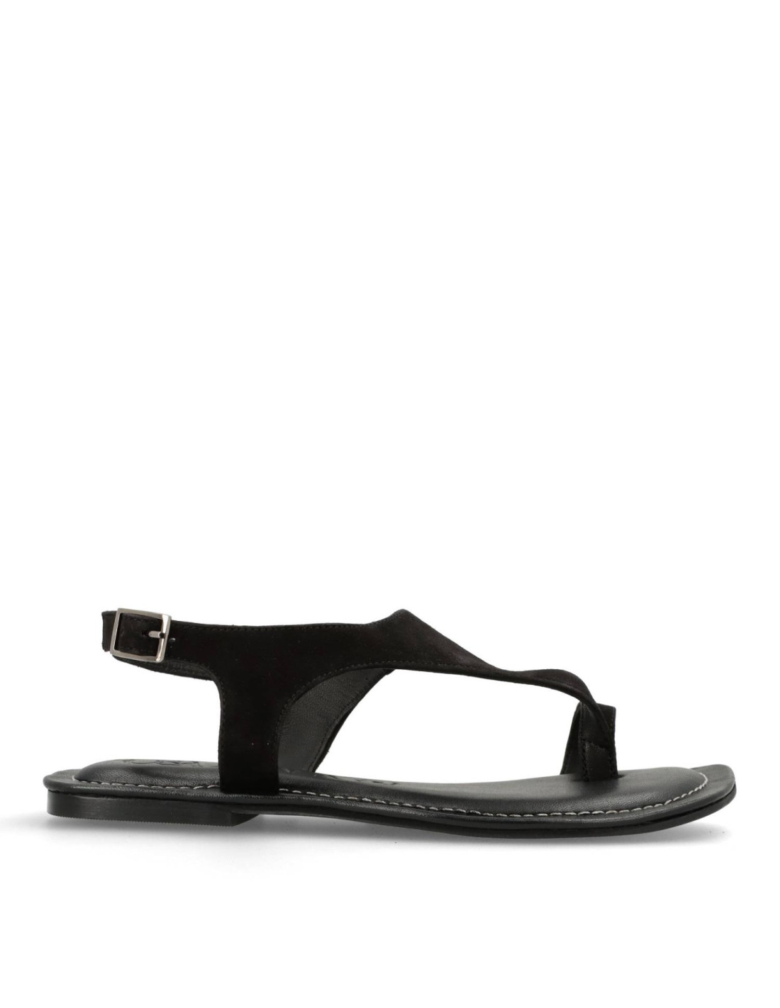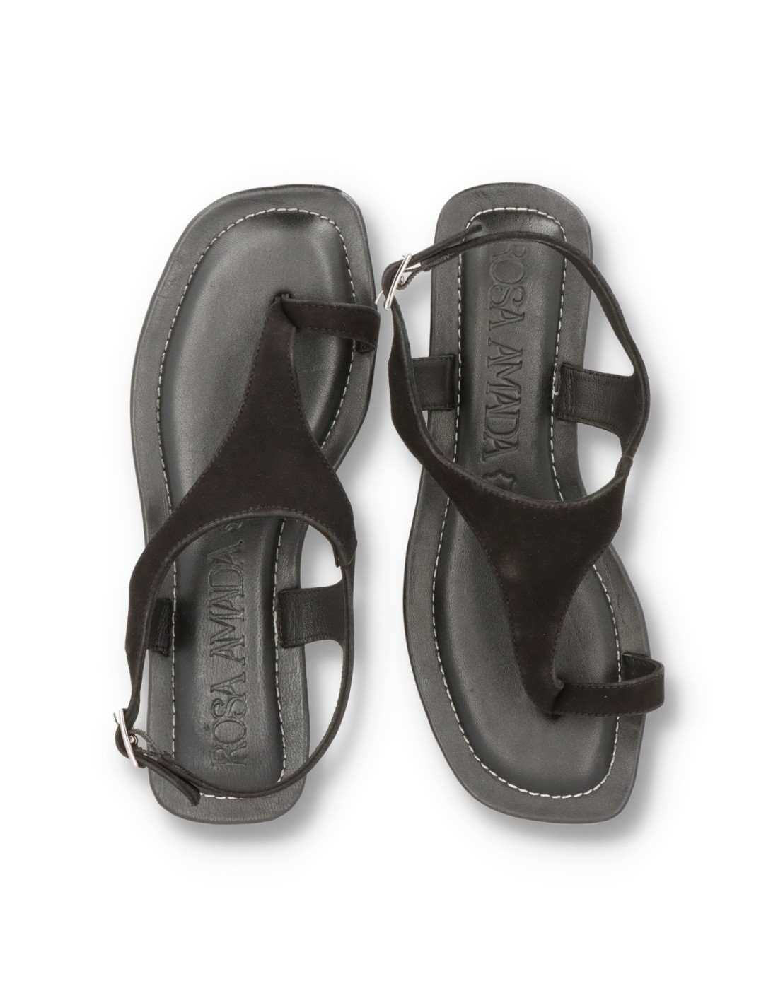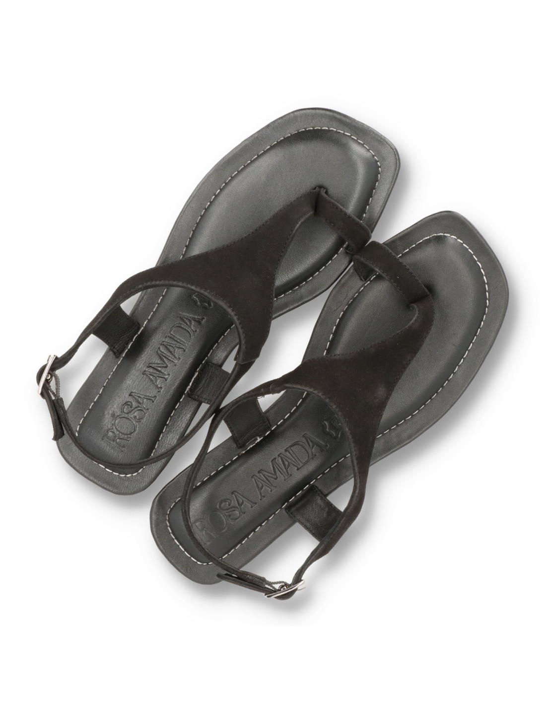 Sandalias planas para mujer 602L288 de Rosa Amada. Sandalias de piel 100%serraje Negro con planta de piel y memory gel para una pisada cómoda, talón ajustable con hebilla y suela de goma flexible.