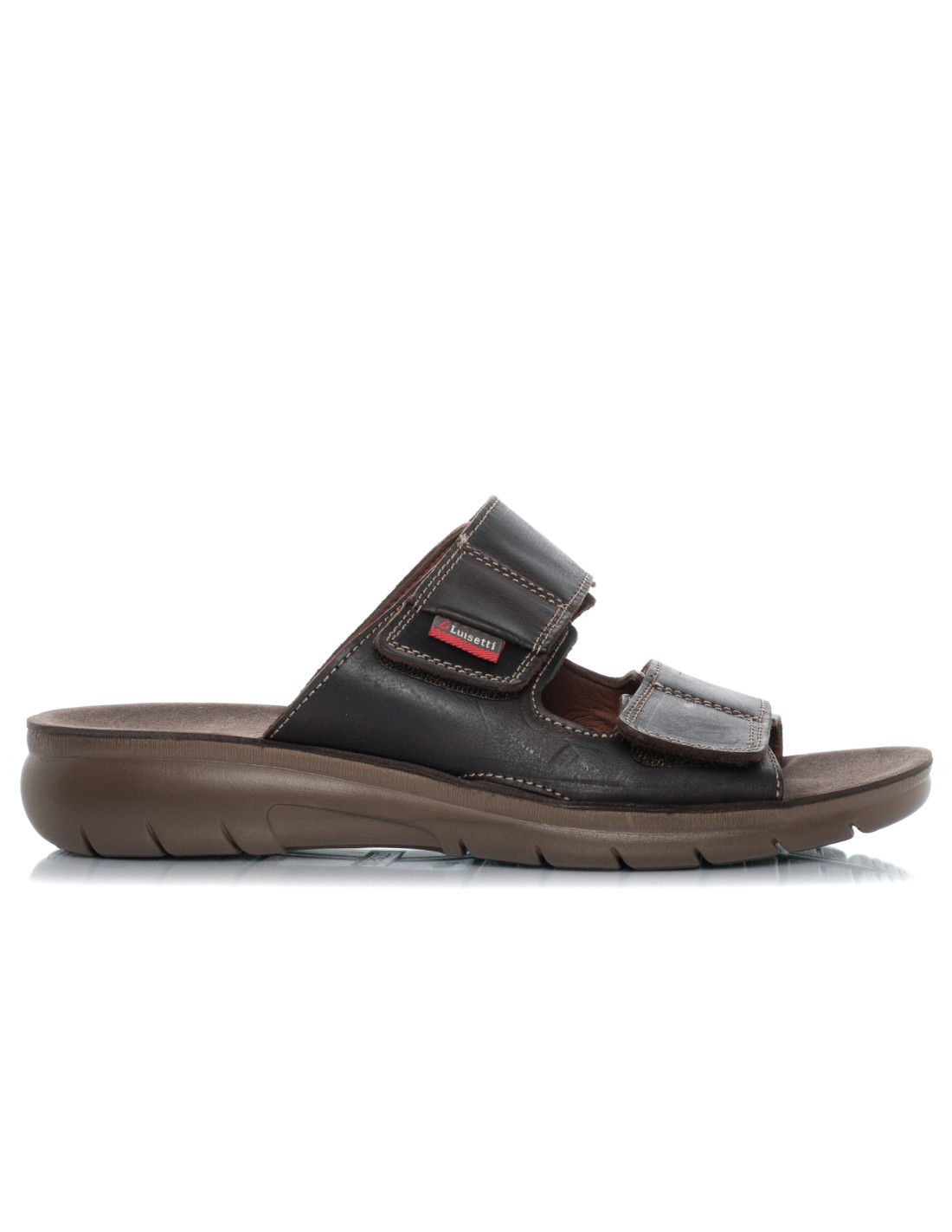 Sandalias de hombre modelo 34101GS de Luisetti. Sandalias sin tira talón con tiras cierre velcro. confeccionada toda en piel vacuno 100% engrasada.Suela de goma inyectada flexible y ligera. HECHO EN ESPAÑA.