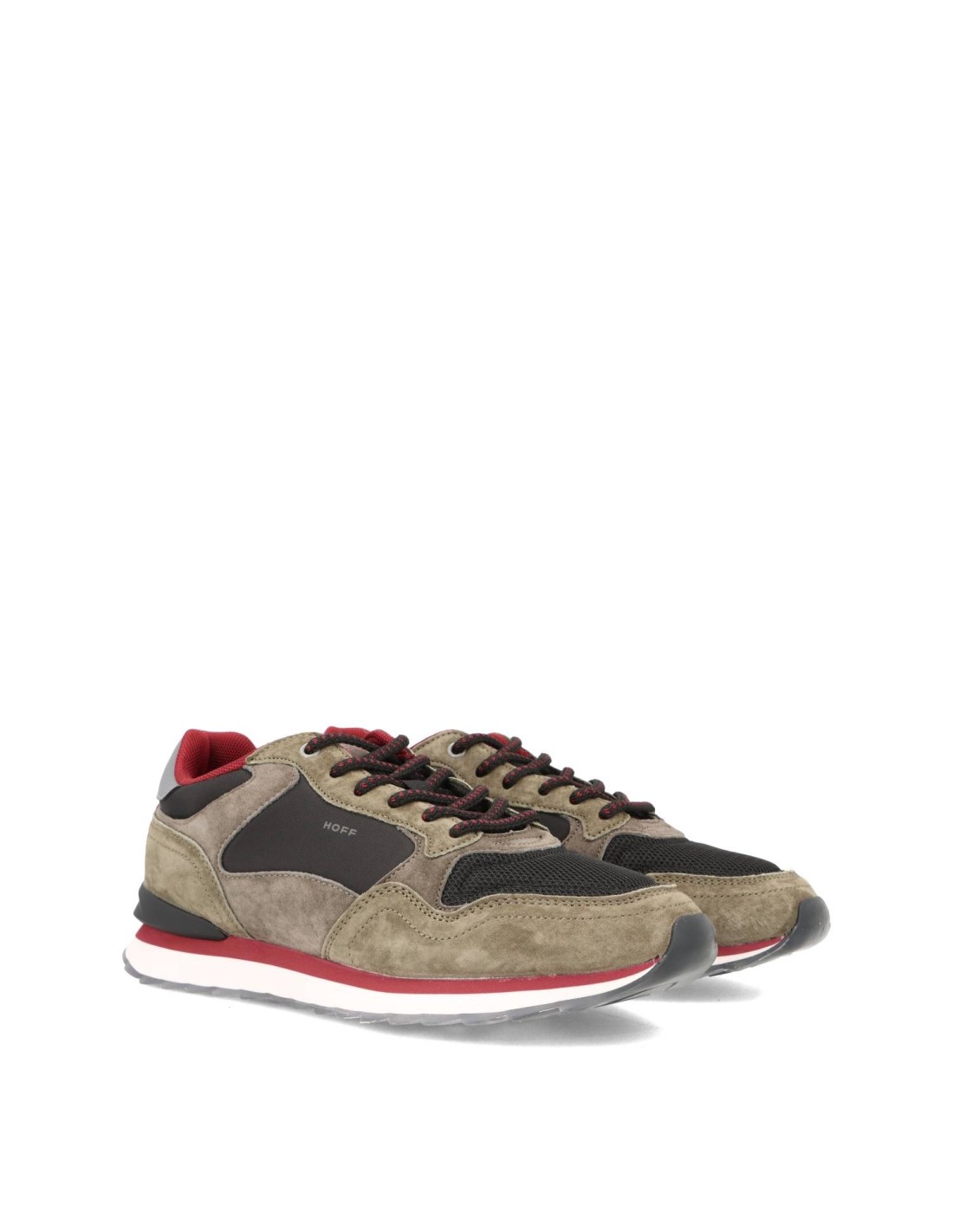 Zapatillas Deportivas de Hombre Mexicali de HOFF. Son una combinación única con sus tonos caqui, café y negro, inspirados en la ciudad mexicana. La combinación de materiales como cuero, nailon y tela técnica las hace versátiles y distintivas. Con un diseño acolchado en la parte delantera y la comodidad garantizada por la plantilla Memory-Foam®. La suela tiene una altura de 3 cm aprox.