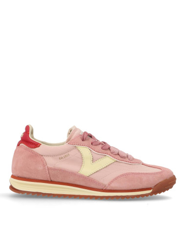 Deportivas para mujer 1158104 SATURNO SERRAJE LAVADO de Victoria, confeccionadas en nylon en combinación con piezas de serraje lavado y sintéticas. V del lateral en blanco en contraste. Cierre mediante cordones bicolor. Suela bicolor y patín dentado en caramelo que favorece un mejor agarre.
