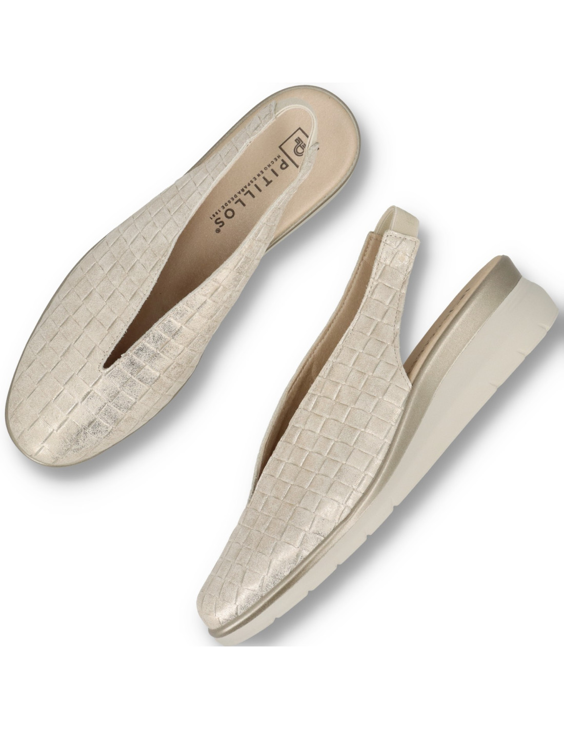 Salón de mujer 11073 de Pitillos. Salón de talón abierto mujer con elástico en piel fantasía ORO. Este salón de Pitillos estiliza la figura sin renunciar al bienestar, convirtiéndose en un aliado clave para eventos, oficina y ocasiones especiales en primavera y verano. La horma estudiada de Pitillos y la suavidad de los materiales reducen puntos de presión y favorecen un apoyo natural del pie, haciendo que cada paso sea más cómodo. La plantilla acolchada y el piso ligero ayudan a amortiguar el impacto de la pisada, mientras que los cierres regulables aseguran una sujeción personalizable, perfecta para adaptarse a distintos anchos y necesidades de cada clienta. Gracias a su diseño versátil, es un modelo que funciona igual de bien para la rutina diaria, las jornadas de trabajo, paseos largos o escapadas de fin de semana, manteniendo siempre una estética cuidada y femenina. Fabricado en España, responde al compromiso de Pitillos con la calidad, la durabilidad y el bienestar del pie, para que puedas disfrutar de la temporada con estilo y total tranquilidad.