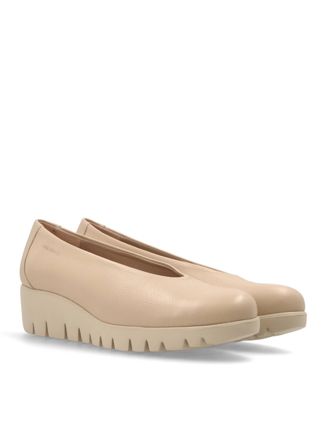 Zapatos con cuña para mujer C-33100 de wonders. Zapato con cuña FLY confeccionado en piel lisa beige. Un modelo clásico y atemporal de escote alto y punta redonda. Con plantilla memoryGel para una mejor pisada. Suela maxi dentada desarrollada con tecnología WondersFly ™ garantía de ligereza y confort . Prepárate para la sensación, YES WE FLY con nuestro Fly.