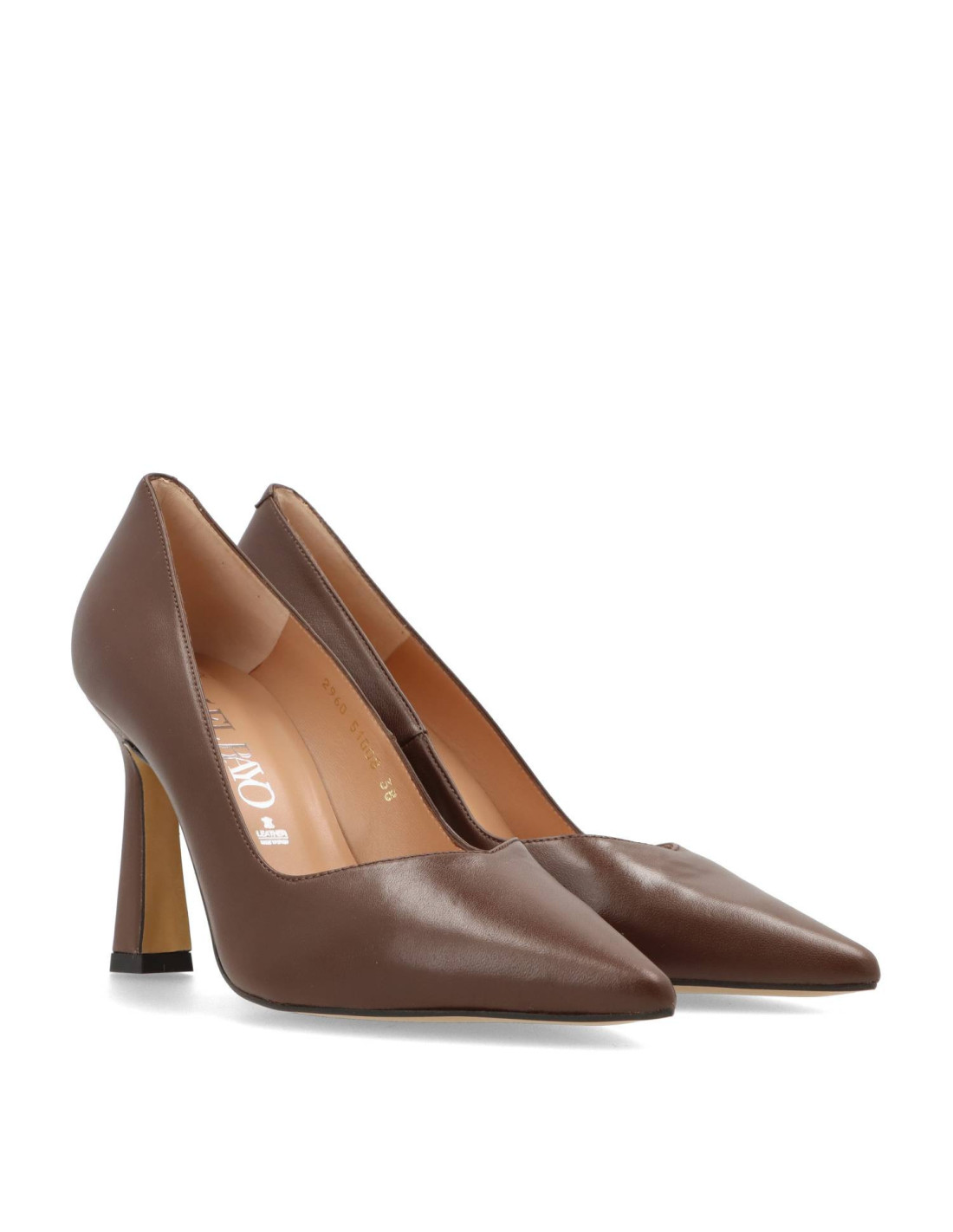 Zapato de Salón para mujer 51008 de Angari para Style Shoes. Salón de horma fina y hueco pico, con tacón carrete de unos 8cm de altura. Confeccionado en piel 100%vacuno textura natural. Interior todo de piel con plantilla de gel para una pisada confortable. HECHO EN ESPAÑA