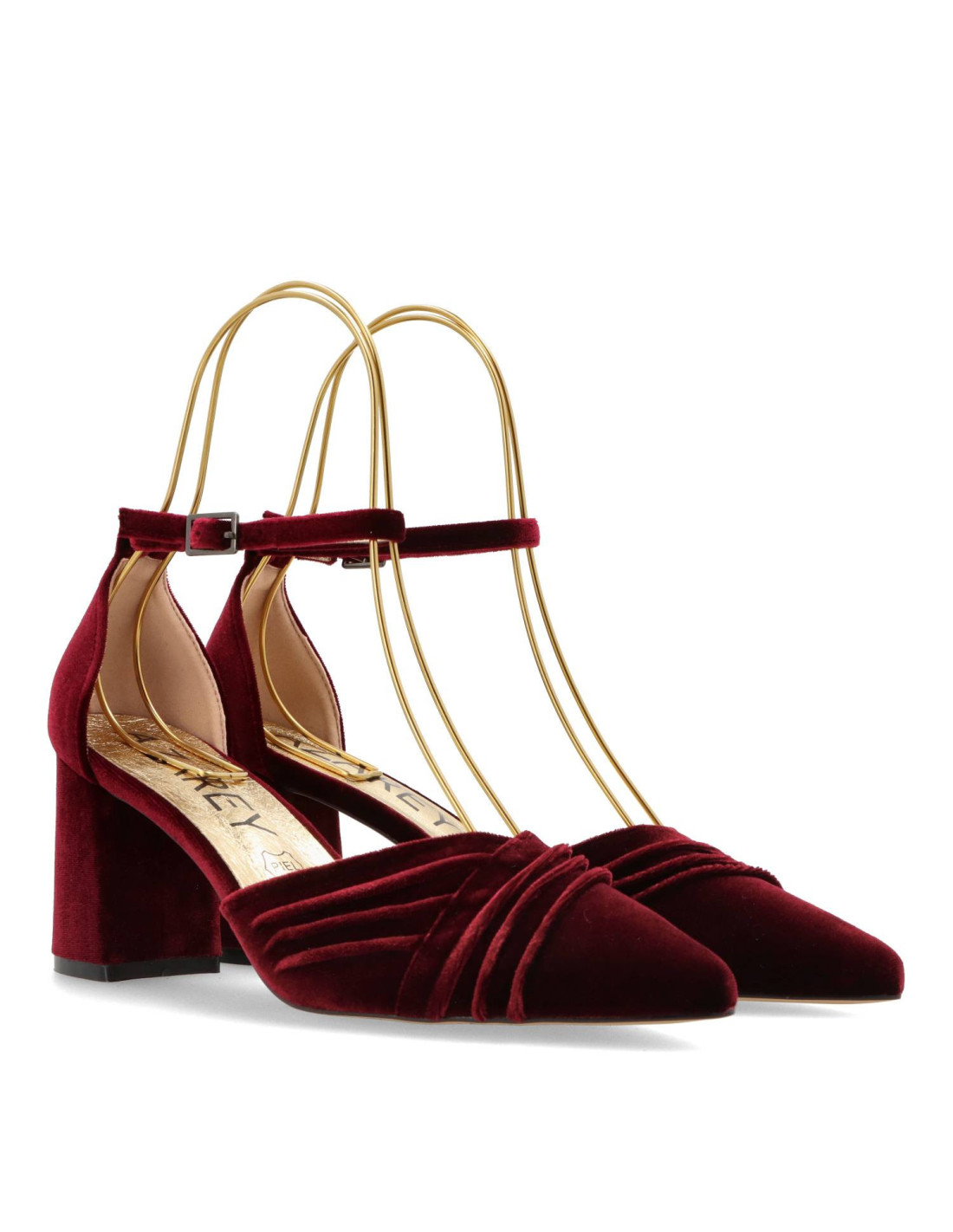 Zapatos de salón para mujer 459K796 de Azarey. Zapato cerrado en punta en terciopelo en distintos colores elegantes que aportan personalidad sin exceso. Con tacón bloque de 8 cm y pulsera al tobillo, ofrece una máxima sujeción y comodidad. Plantilla de piel acolchada para dar mayor comodidad.