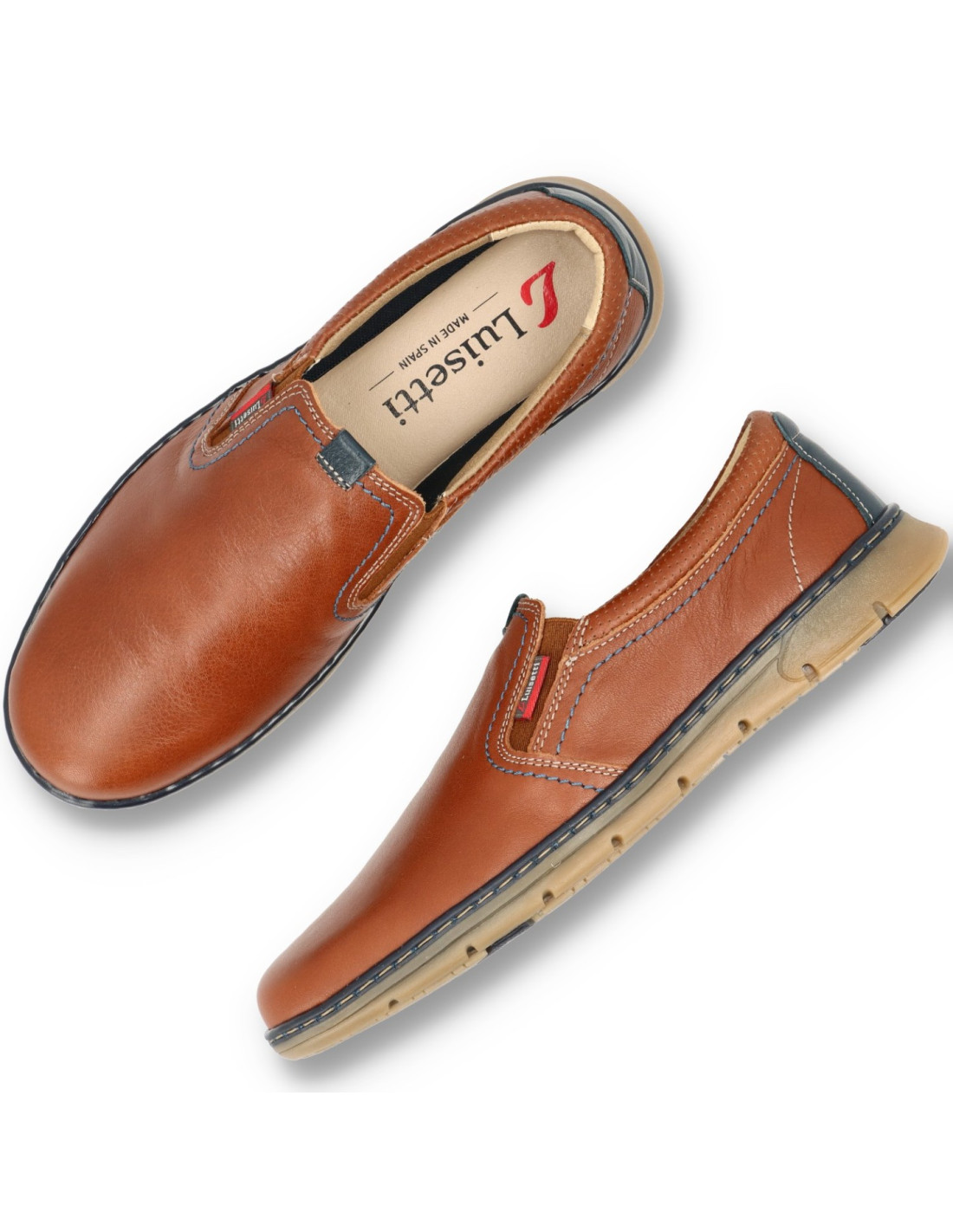 Zapatos sport de hombre tipo mocasín 23320NA de Luisetti. De piel 100%vacuno y forro en material sostenible. Plantilla interior memory foam extraible. Suela de goma ligera. HECHO EN ESPAÑA