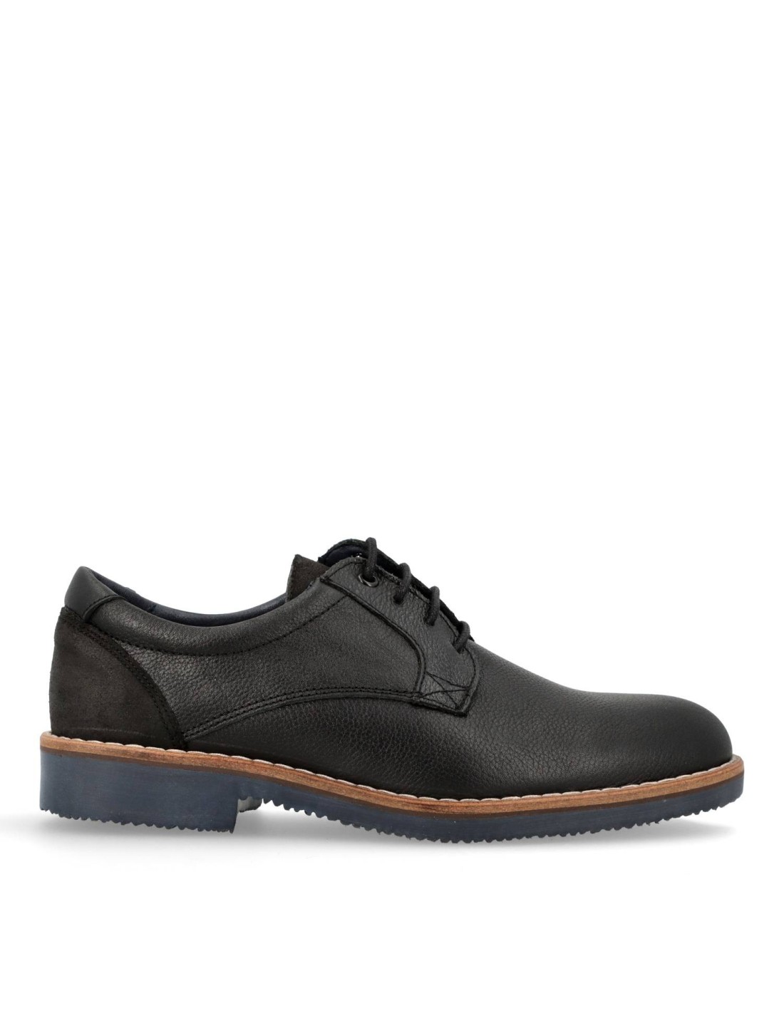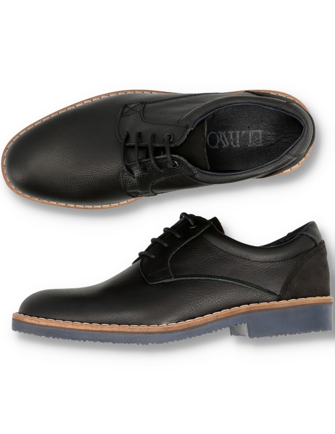 Zapato sport para hombre modelo 22872 de R-STAR. Zapato con cierre de cordones, confeccionado en piel 100%vacuno. Interior en microfibra con planta de gel. Suela ligera de goma bicolor y vira cuero con pespuntes.
