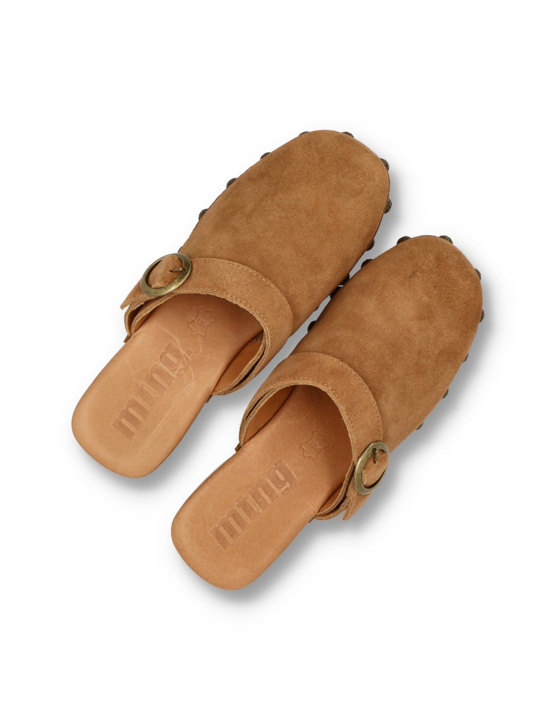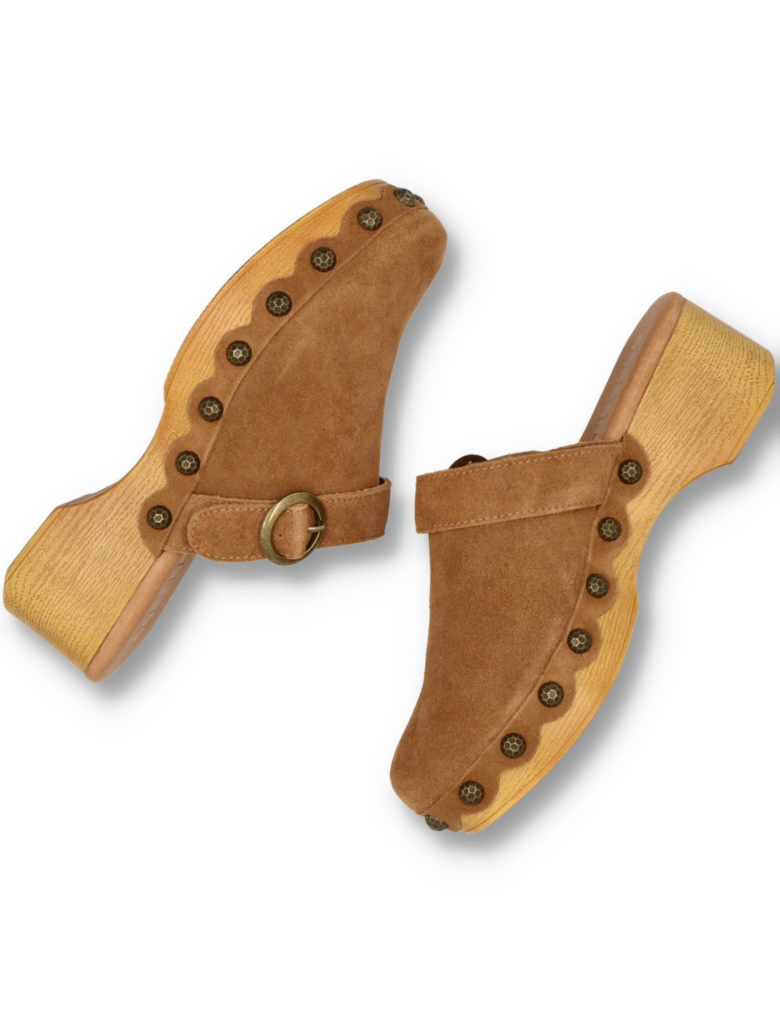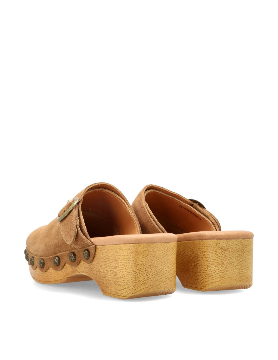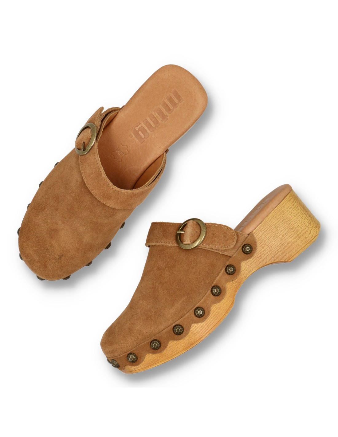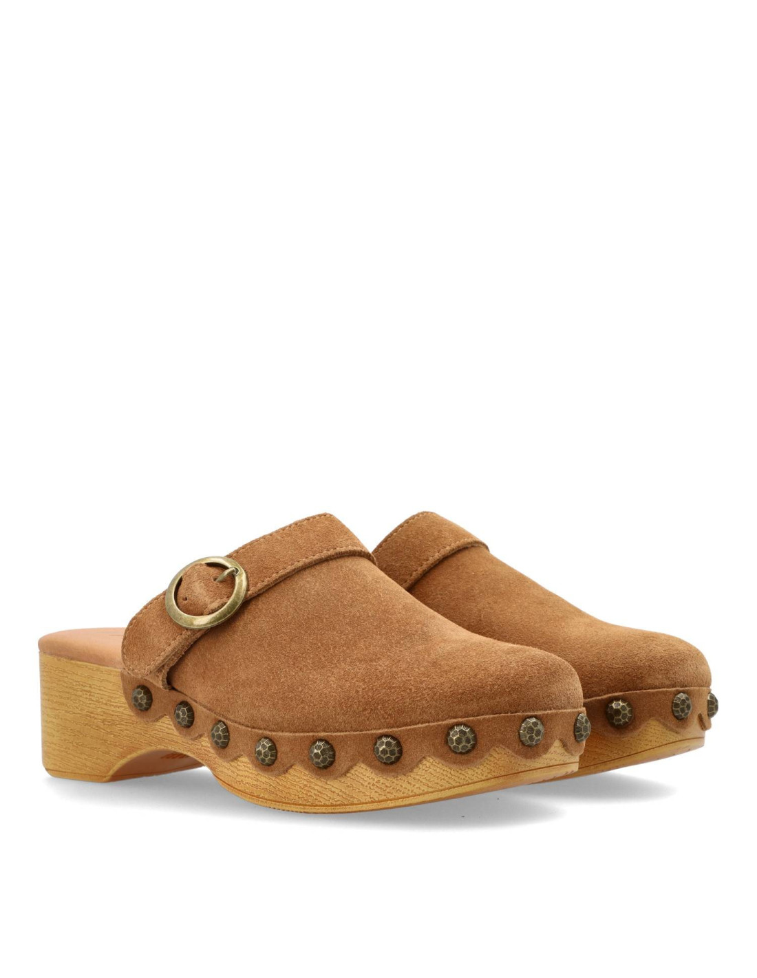 Zueco para mujer 59634 ELOIS de Mustang. zueco con diseño elegante y sencillo con un toque atemporal. Fabricado en piel 100% de serraje y planta acolchada. Piso ligero de poliuretano imitando la madera con remaches, dandole un aire hippie.